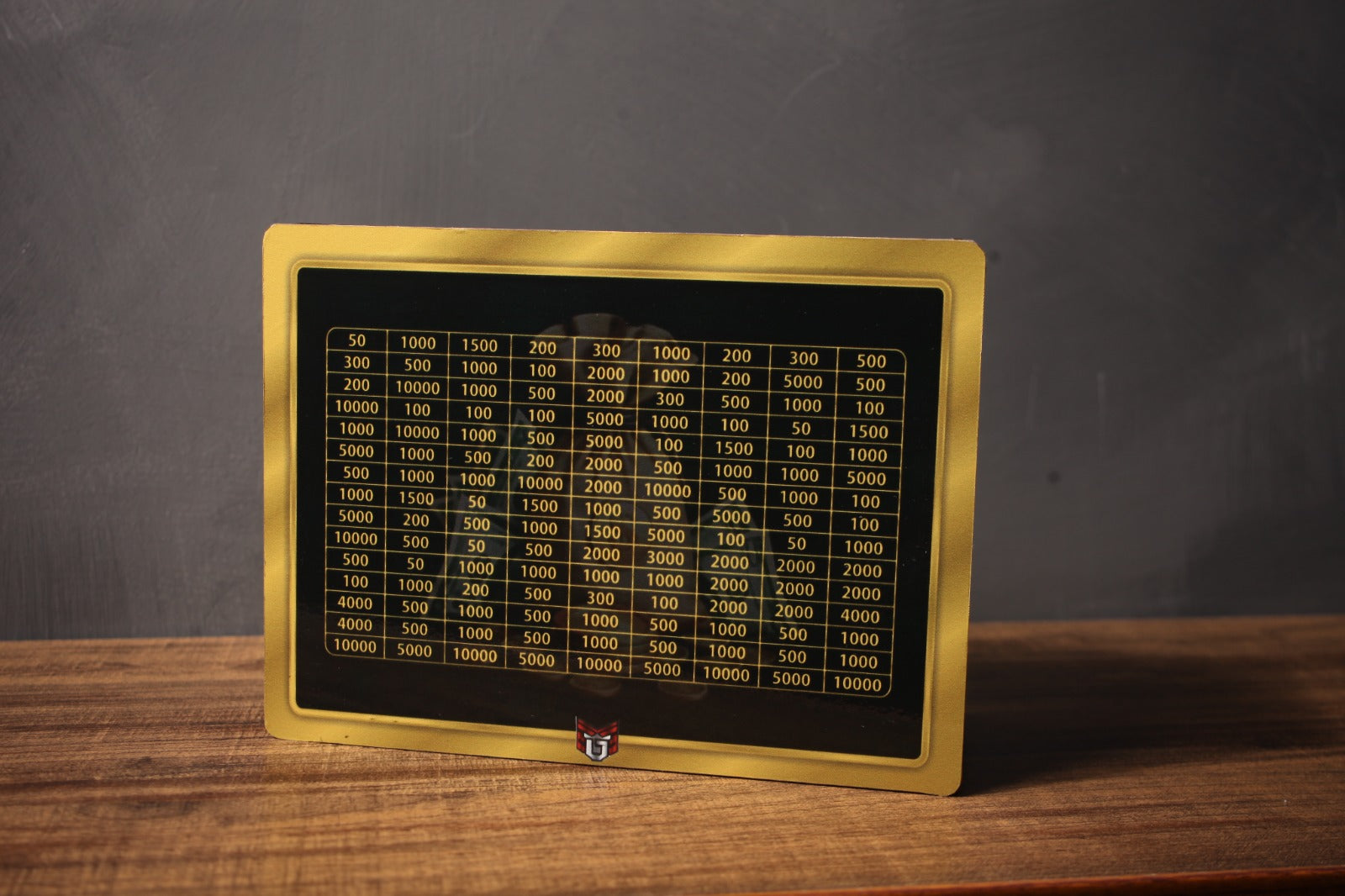 Front Side: Your chosen saving goal beautifully printed to keep you motivated every day.